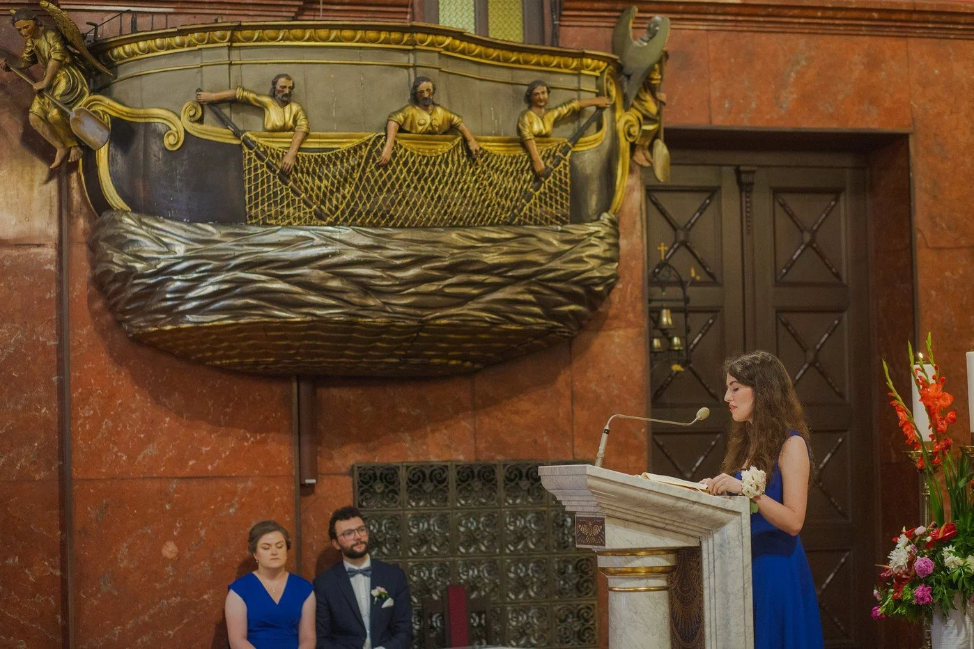 Ksiądz przywitał narzeczonych i rozpoczęła się Msza Święta z sakramentem małżeństwa. Paula i Martin zadbali o wiele detali. Również wybrali Słowo Boże na ten dla nich jakże ważny dzień. To wzruszyło księdza bo nawet powiedział o tym podczas homilii. Młodzi zaangażowali również bliskich i przyjaciół w czytania, psalmy.