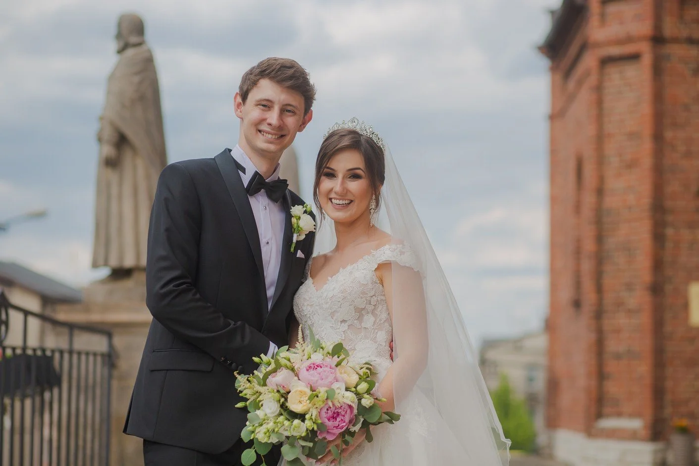 Pod Bazyliką w Piekarach mieliśmy piękne schody. One dały okazję do pokazania trenu i welony w całej krasie: